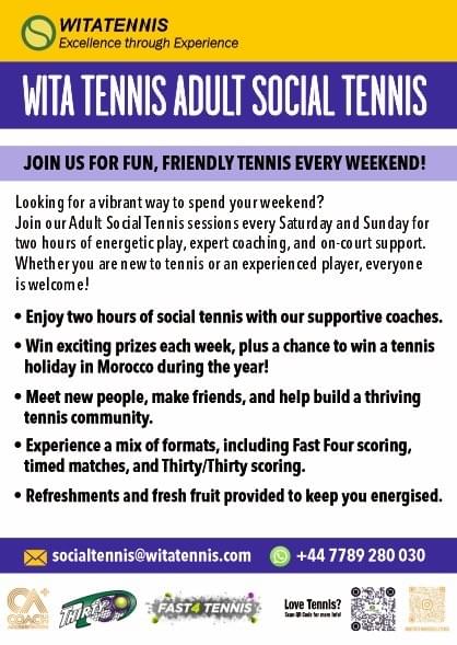 WITA TENNIS ADULT SOCIAL TENNIS @ Ark Burlington Danes W12 0TN